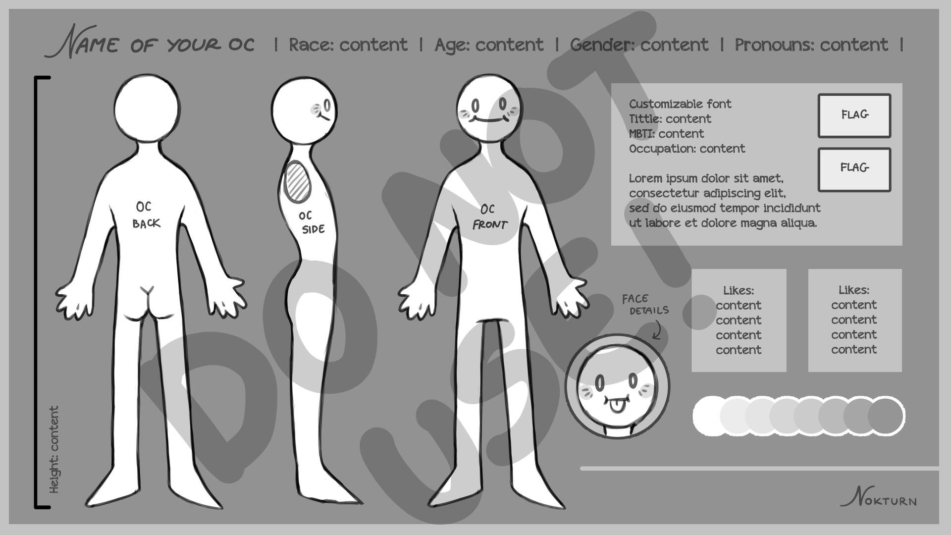 - Concept art, reference sheets of the characters etc. are not necessary, but are very welcomed as they make the whole process easier and quicker